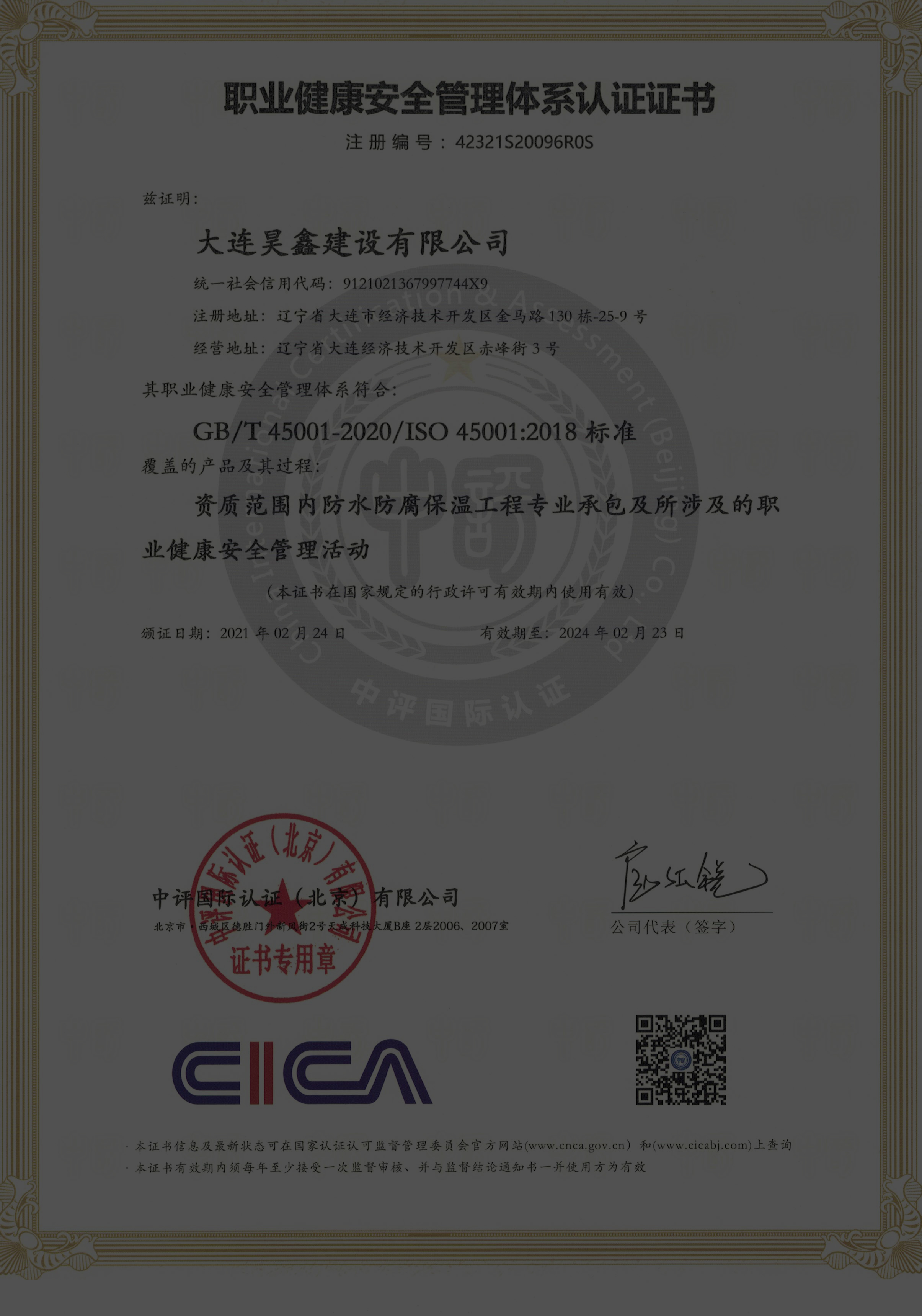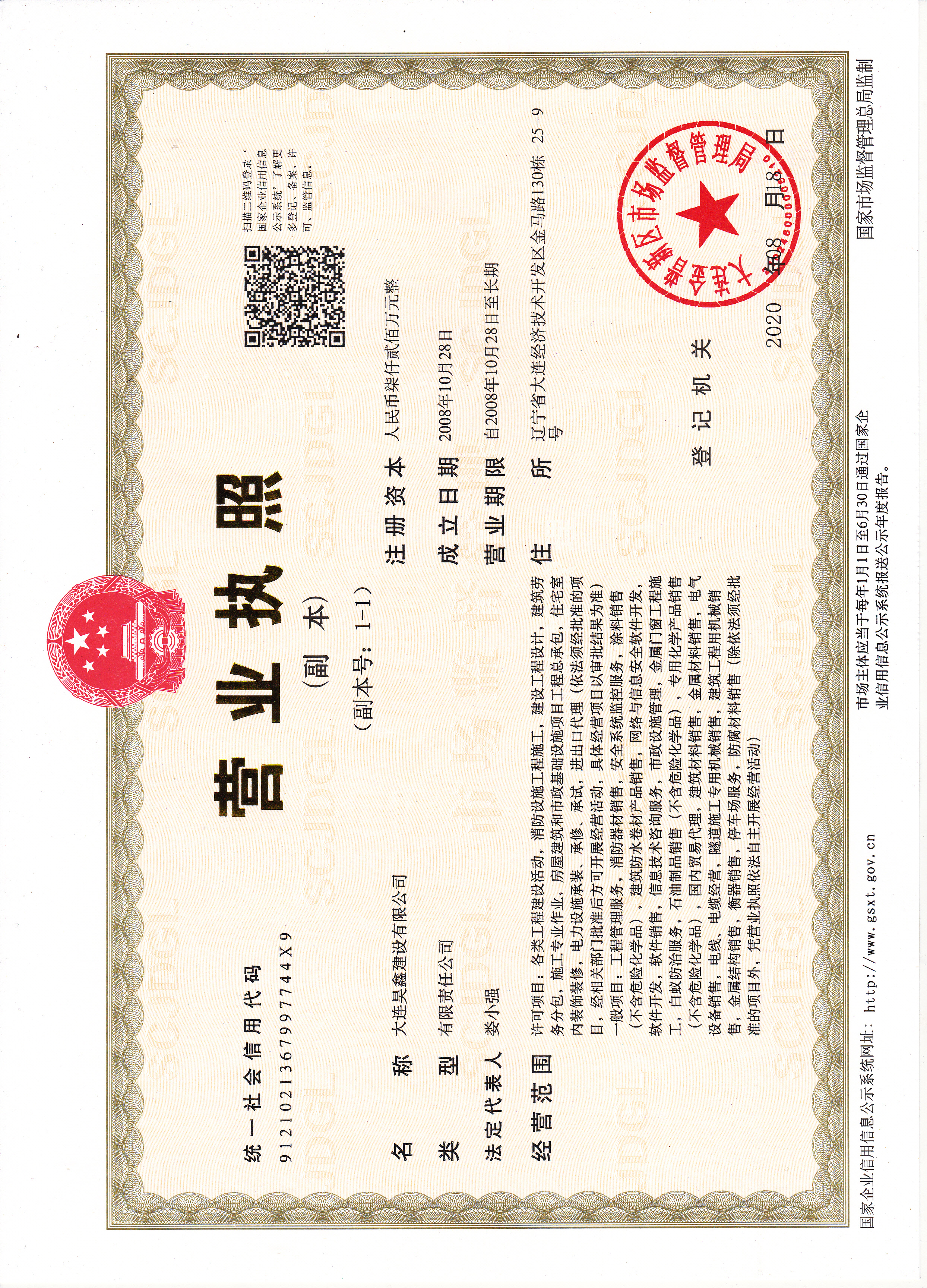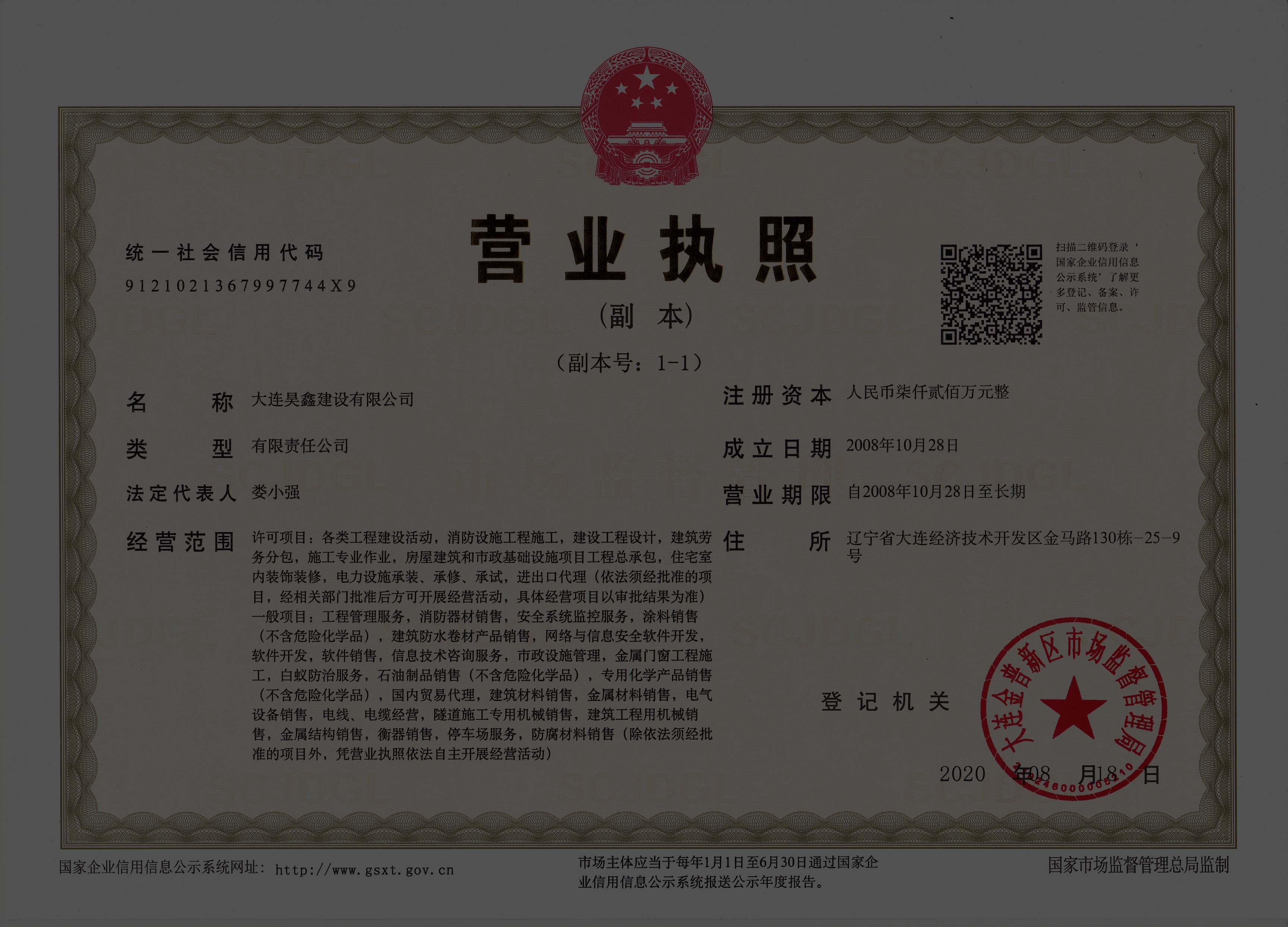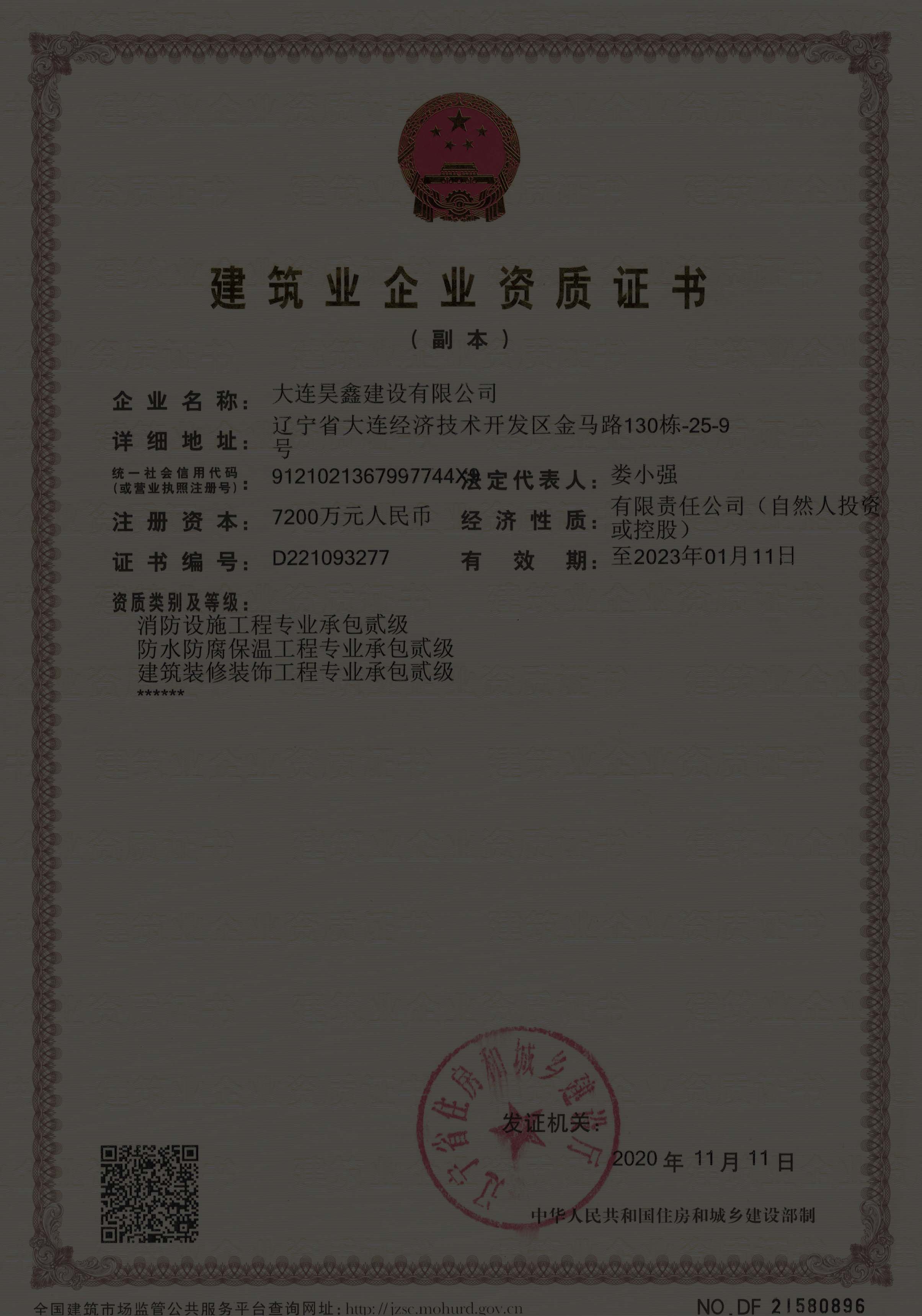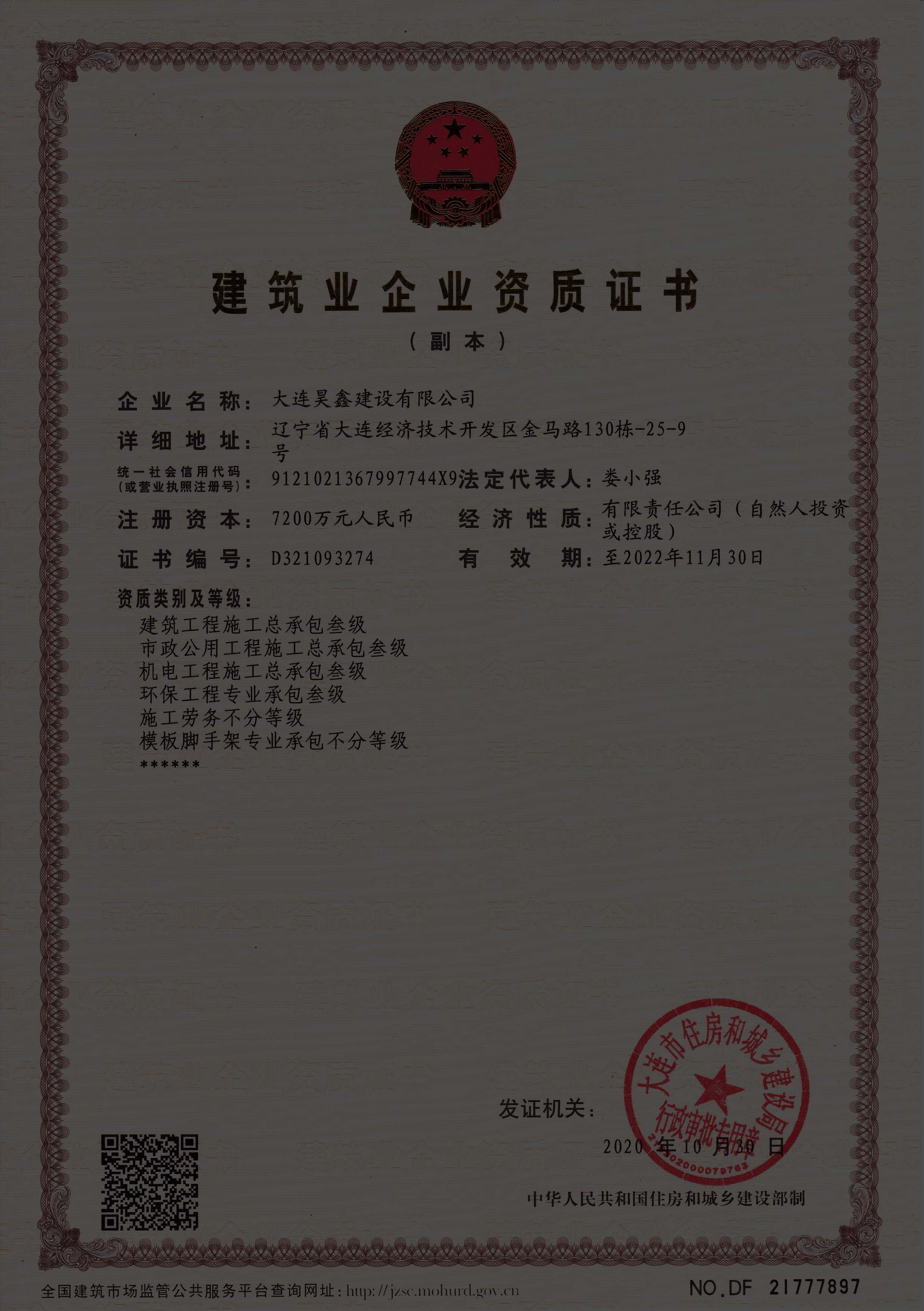 更名大連昊鑫建設有限公司