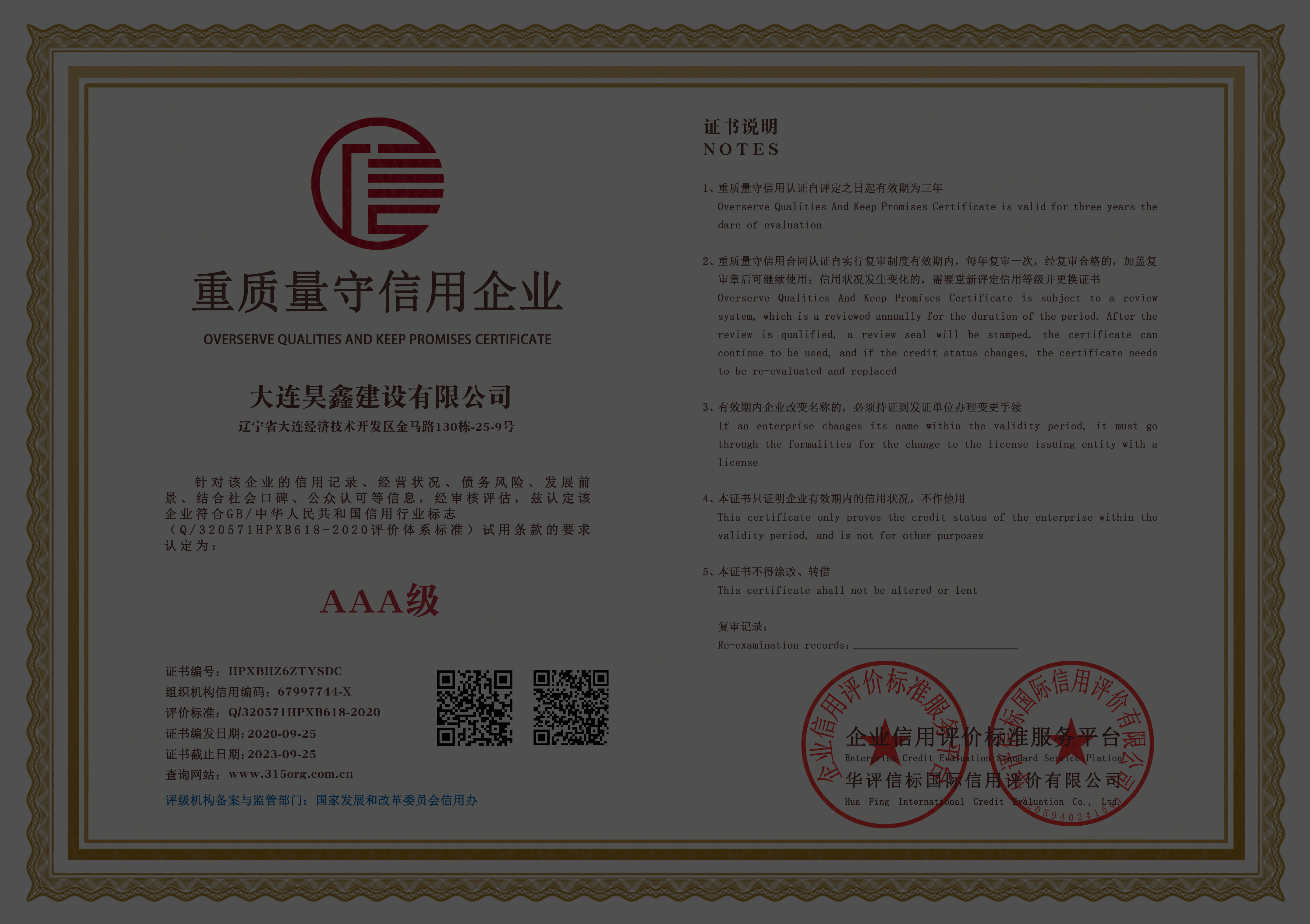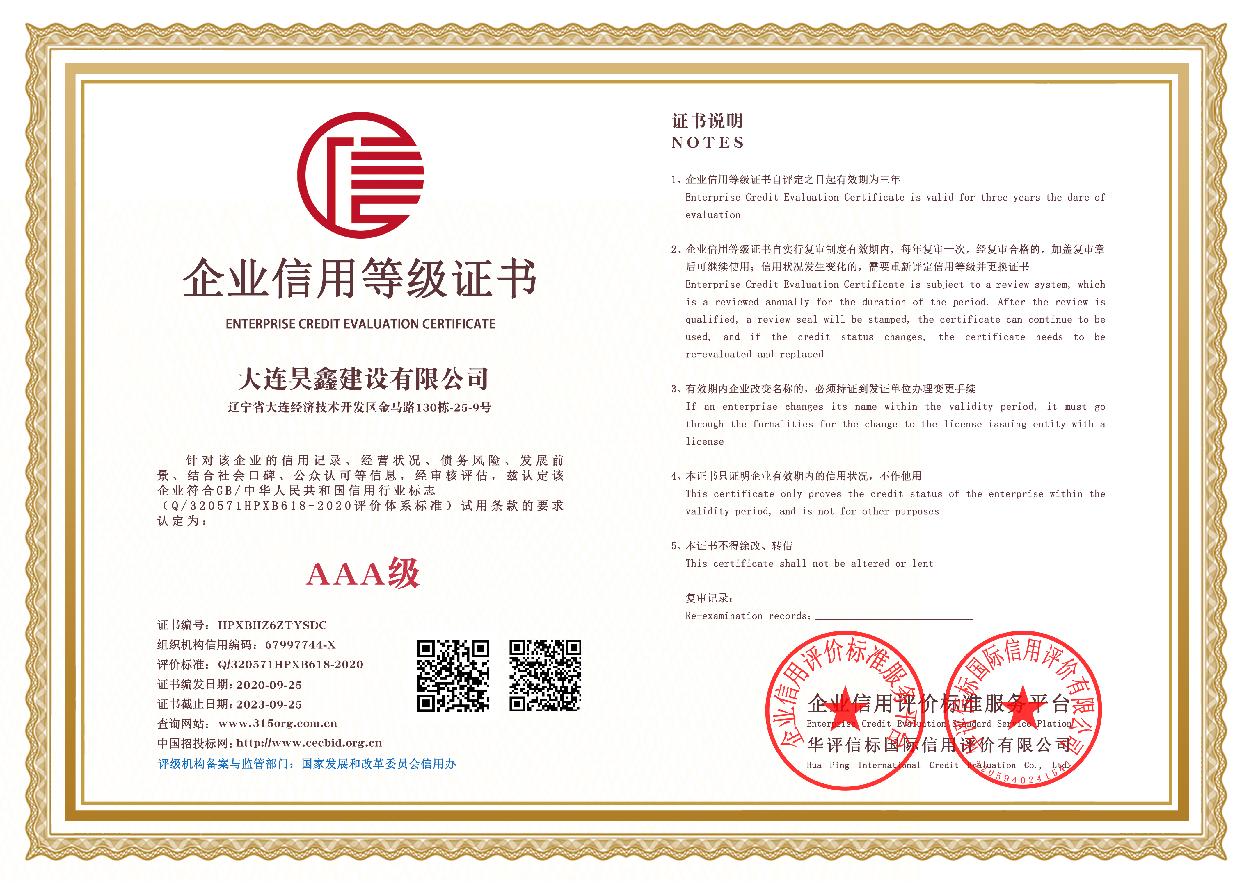 AAA企業(yè)信用等級